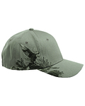 100% brushed cotton twill; Structured front; Pre-curved visor; Hook and Loop backstrap; Detailed embroidered wildlife scene on right side; Dri Duck embossed leather patch left of back vent;